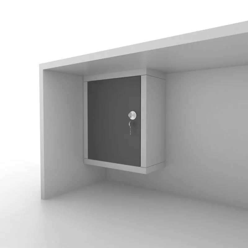 Banko altına gizli montaj için tasarlanan kilitli dolap; küçük ölçüsüyle evrak ve değerli eşyalar için güvenli saklama sunar.
